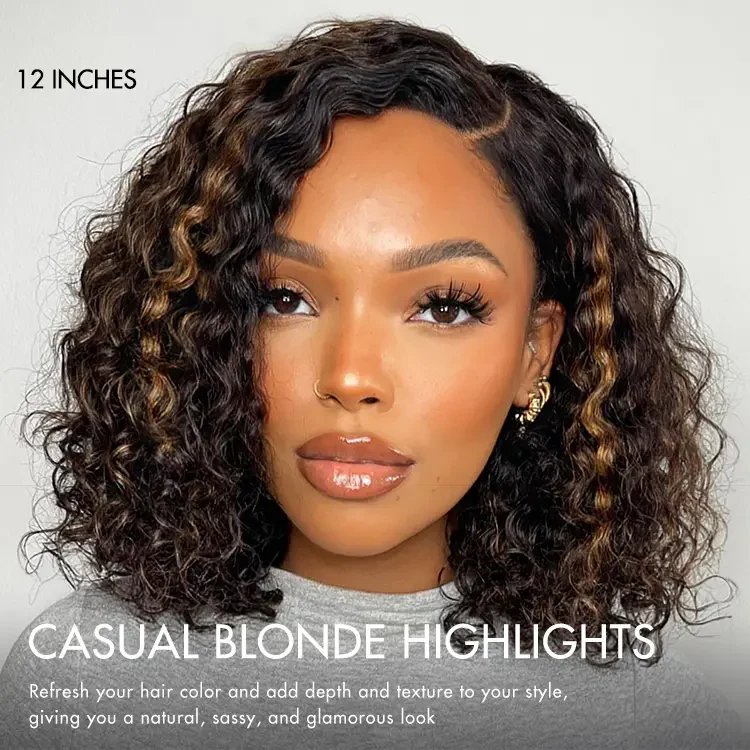 Exclusive Sale | Blonde Highlight Short Curly Glueless Minimalist HD Lace Human Hair Wig